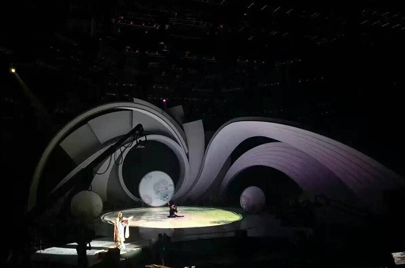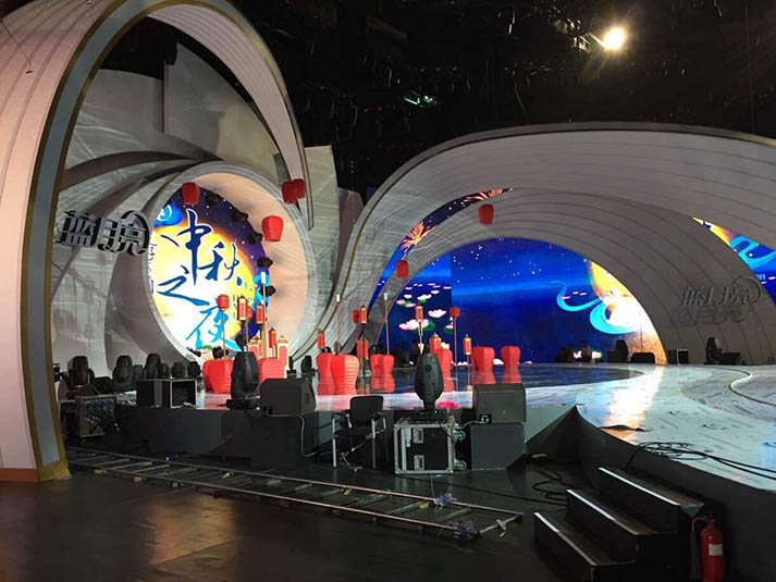 為更好地契合中秋節(jié)溫馨團圓的氛圍,湖南衛(wèi)視2016中秋之夜緊扣“花好月圓”的主題,在舞臺上勾勒花瓣綻放的造型,打造了一個“小而美”的精致舞臺,花瓣的中心恰似一輪中秋月,一束束的燈光從圓月的輪廓上放射出來,成為整個舞臺的焦點。