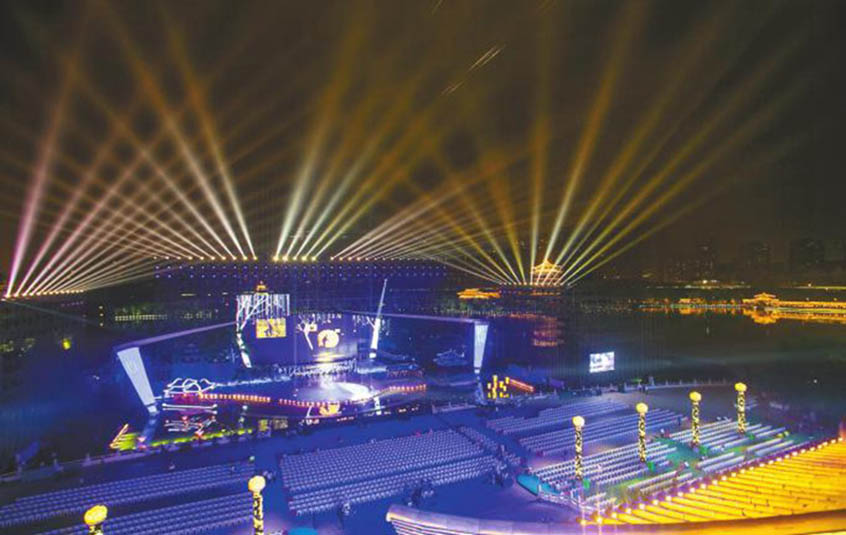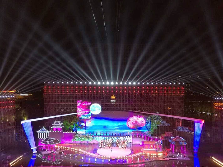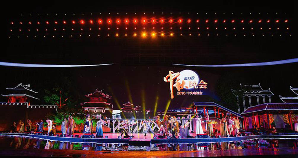 2016年中央電視臺(tái)中秋晚會(huì)將于9月15日20時(shí)在西安向海內(nèi)外觀眾直播,今年的中秋晚會(huì)首次以水上舞臺(tái)形式演出,在大唐芙蓉園的人工景觀湖上,營造出穿越千年、貫通古今的浪漫意境,讓觀眾真切感受濃郁的唐文化氣息。浩洋電子旗下特寶麗大功率切割燈V3000P、三合一全能王G10 HYBRID 、LED變色燈PB12A等為晚會(huì)添彩助力。