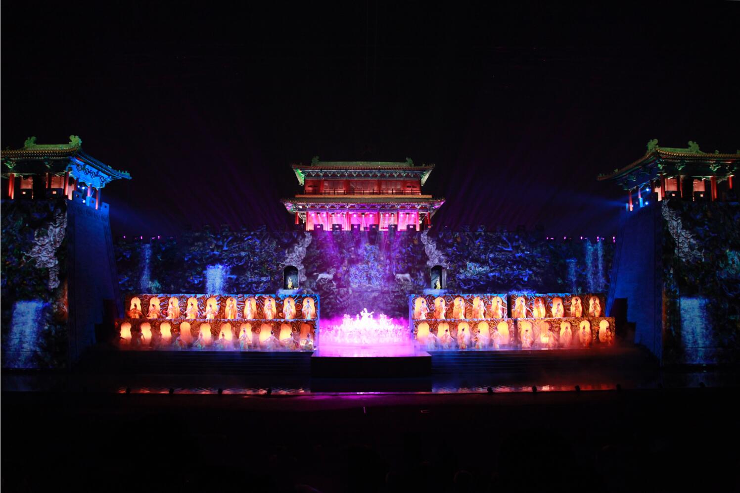 大型實(shí)景演出《正定記憶》匯聚了國(guó)內(nèi)頂級(jí)的藝術(shù)班底,相關(guān)部門也承辦過國(guó)內(nèi)一流的大型演出活動(dòng)。其中,舞臺(tái)美術(shù)、威亞、水幕設(shè)施的設(shè)計(jì)、安裝公司參與過北京奧運(yùn)會(huì)演出;燈光、音響設(shè)備安裝公司參與過杭州G20峰會(huì)演出,并由王喆老師擔(dān)任燈光總設(shè)計(jì);中央電視臺(tái)服裝道具團(tuán)隊(duì)進(jìn)行服裝道具設(shè)計(jì)制作;承辦過朱日和閱兵看臺(tái)搭建任務(wù)的一家公司進(jìn)行看臺(tái)設(shè)計(jì)、制作和安裝,看臺(tái)更加實(shí)用,安全性也更高。如此強(qiáng)大的幕后團(tuán)隊(duì)為觀眾呈現(xiàn)一場(chǎng)精彩絕倫、無與倫比的演出。