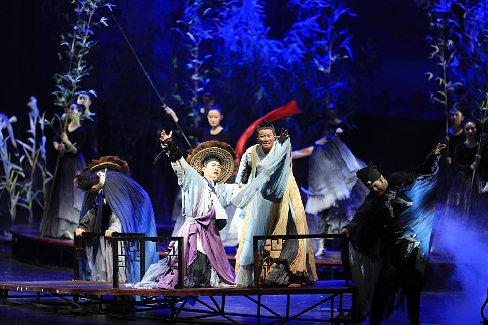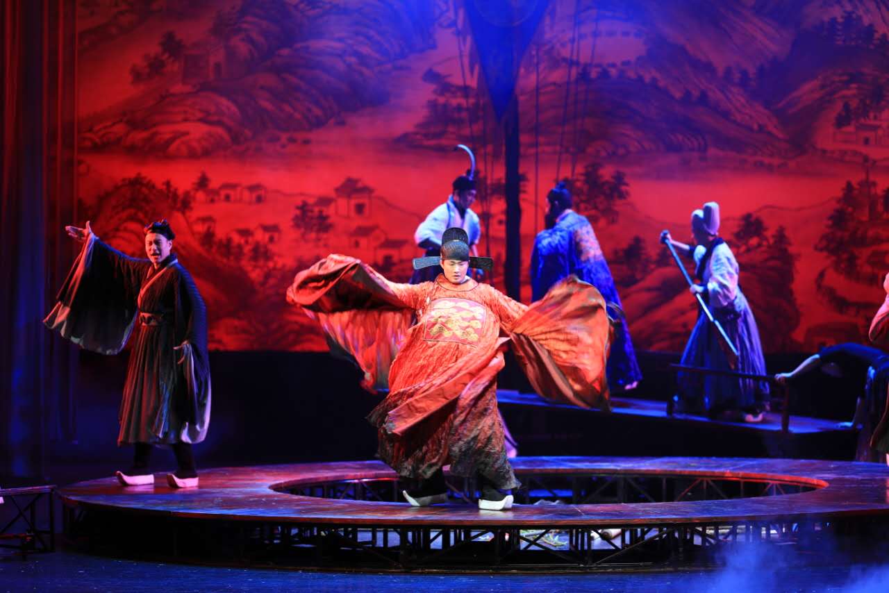 據(jù)導演宮曉東介紹,該劇在舞臺的呈現(xiàn)上別具風格,特別運用幾塊可移動的平臺打破傳統(tǒng)的寫實手法,演員們在上面可表現(xiàn)出攀山越嶺、行舟涉水的情景。全劇除了背景音樂,所有的音效如狂風、水流、濃霧、雷鳴、鳥鳴等也都是由演員現(xiàn)場制作。劇中還融合了中國戲曲、古典民樂、現(xiàn)代舞蹈、民族文化等多種表現(xiàn)元素。另外,觀眾們還能看到演員現(xiàn)場換服裝、候場……這樣的創(chuàng)新,打造出一部極強現(xiàn)代感的歷史劇。在首演結束后,在場的專家、領導和觀眾們都對該劇予以一致好評。