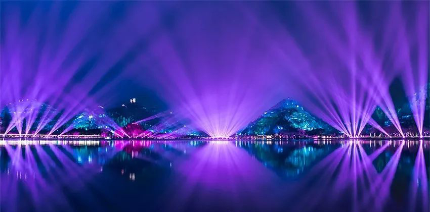 據(jù)悉,該項目在傳統(tǒng)照明的基礎上,巧妙地利用了雷達動過捕捉技術、外網(wǎng)視頻交互技術與光影配合,同時在游覽動線上設計了互動投影裝置和LED成像矩陣裝置,展現(xiàn)出特殊的震撼性視覺體驗效果等,描繪出一幅美麗的山水畫卷。山水湖景燈光秀《明鑲西秀 意寫江南》這一場利用現(xiàn)代智能燈光設計與技術,音樂與現(xiàn)代光影配合的極致演出,打造出具有安順特色的夜景風姿,成為了貴州安順虹山湖一張靚麗的名片。