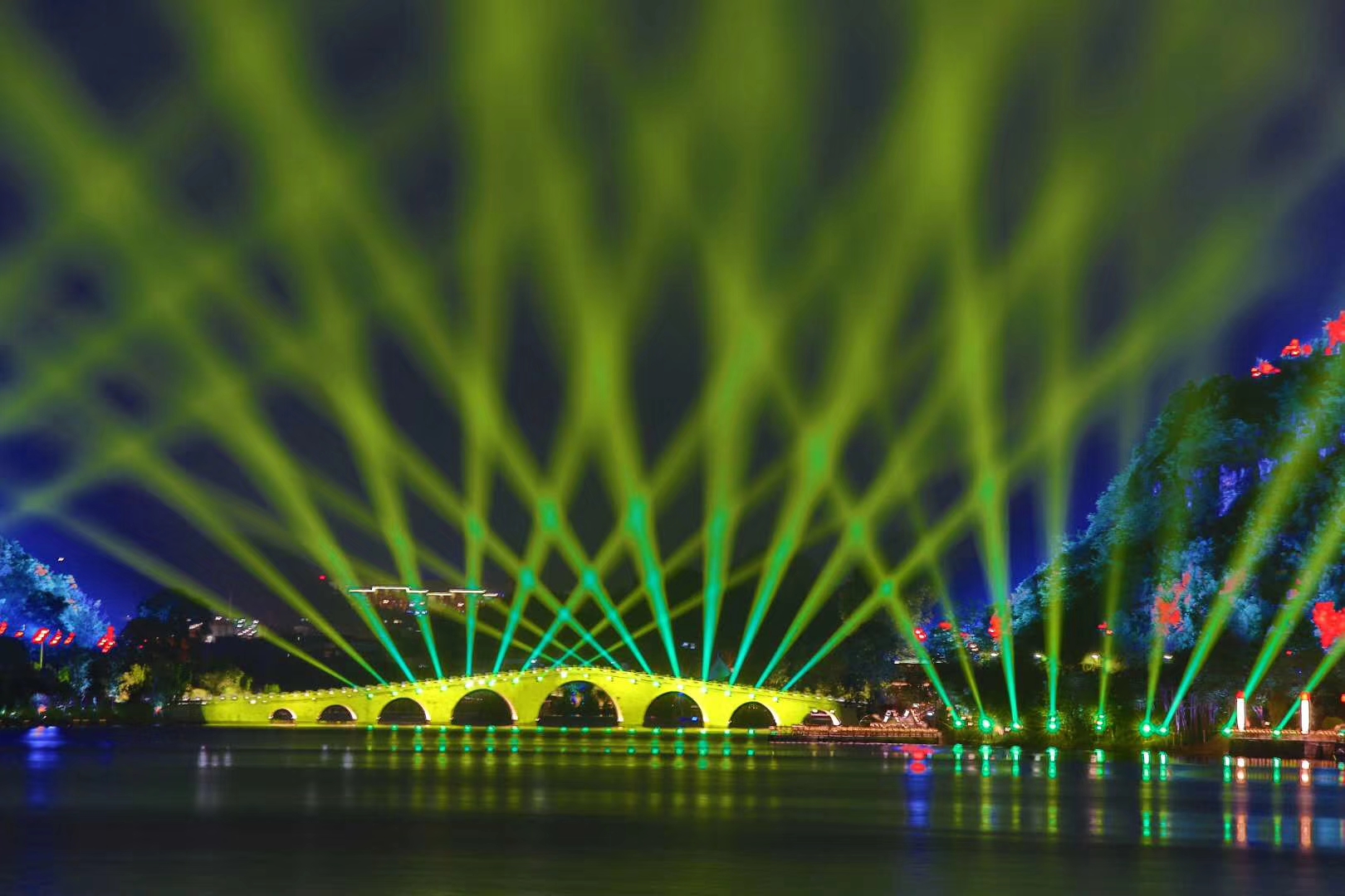 近日,貴州安順虹山湖夜景照明提升工程順利完成驗收工作,不僅作為安順市西秀區(qū)文化旅游人居環(huán)境提升工程一期項目的重點工程,同時引入了項目的重頭戲——大型山水湖景燈光秀《明鑲西秀 意寫江南》。此次虹山湖燈光提升工程由利亞德四川普瑞照明擔任總施工、總承包及總設計方,希核創(chuàng)意(北京)文化發(fā)展有限公司藝術總監(jiān)、舞臺視覺藝術家王遙擔綱燈光總設計。