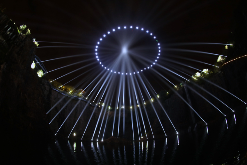 聆聽萬(wàn)物回響,42架無人機(jī)閃光起航,配合音樂的節(jié)奏在空中編織出生命的舞蹈,一只來自宇宙深處的眼睛在夜空中與觀眾的眼睛遙遙相對(duì),提醒我們傾聽來自自己內(nèi)心的回響。