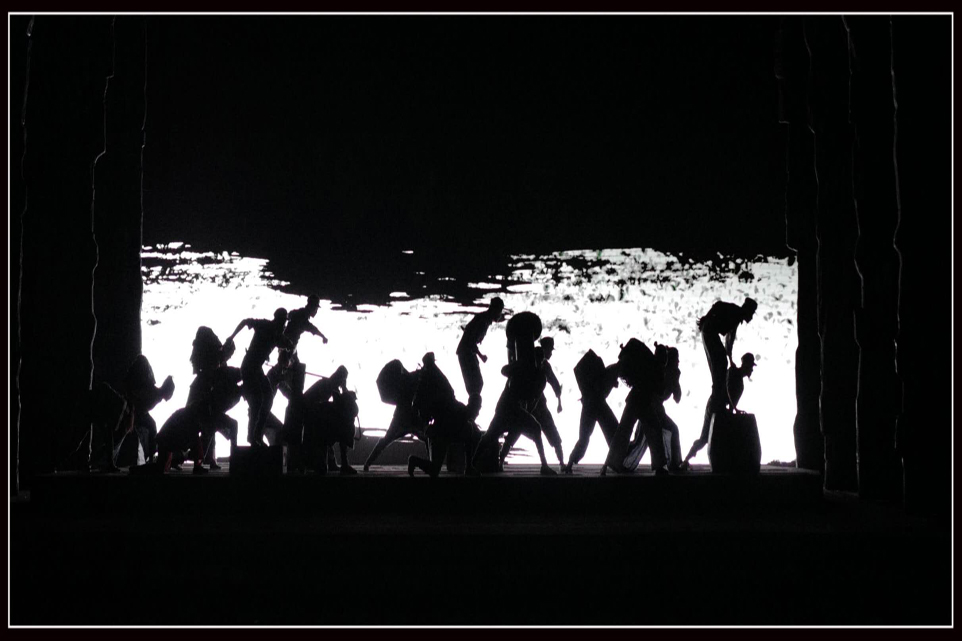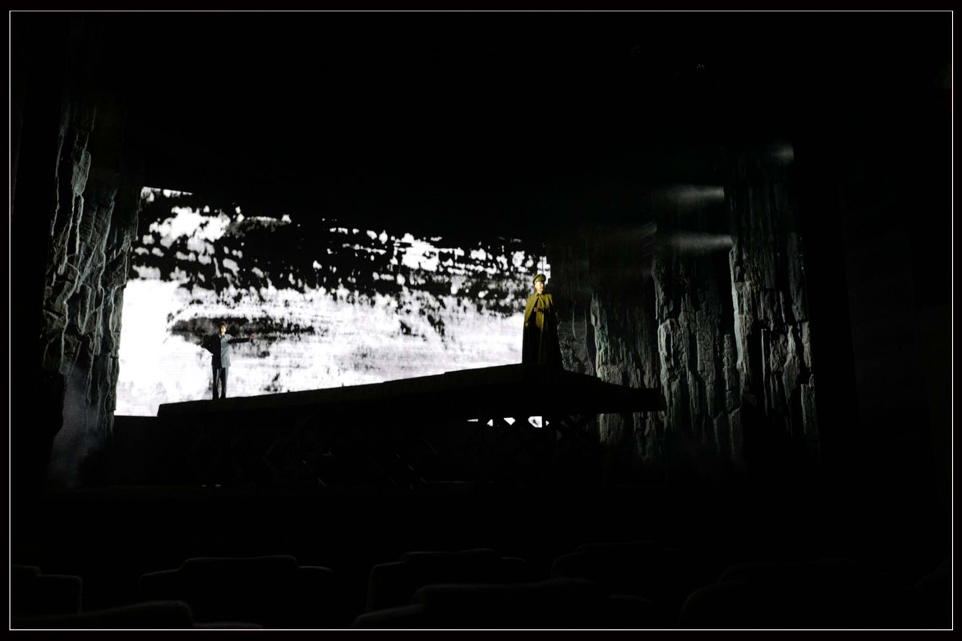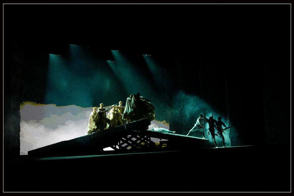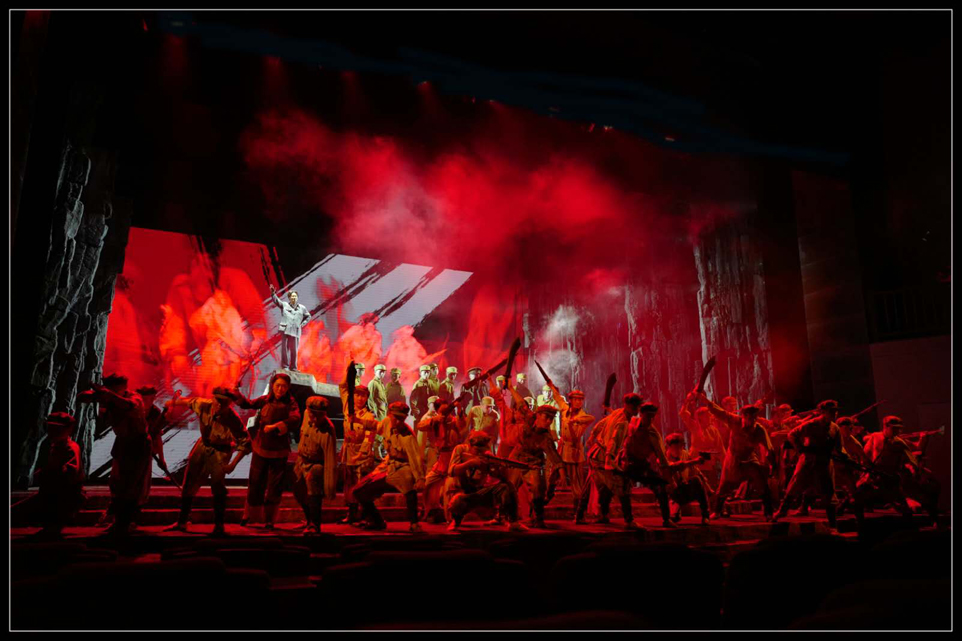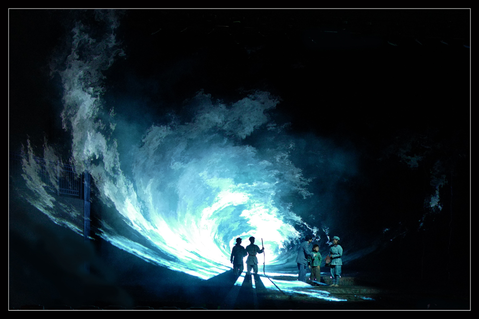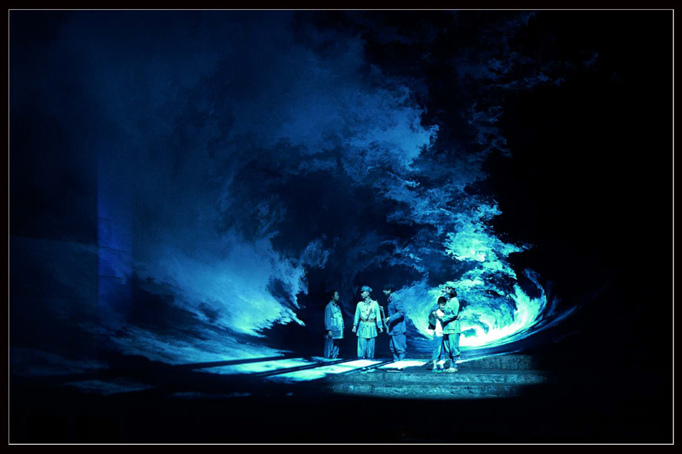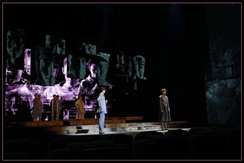舞臺(tái)劇中 “交互式”的藝術(shù)表現(xiàn)形式,涵蓋了話劇、舞劇、舞臺(tái)美術(shù)、音樂、音響、多媒體、燈光等一系列在其中,讓劇目更具有生命力,更具有視覺感官?zèng)_擊,能夠?qū)v史重現(xiàn)在觀眾的眼前,呈現(xiàn)一個(gè)逼真的全維度感官場(chǎng)景。