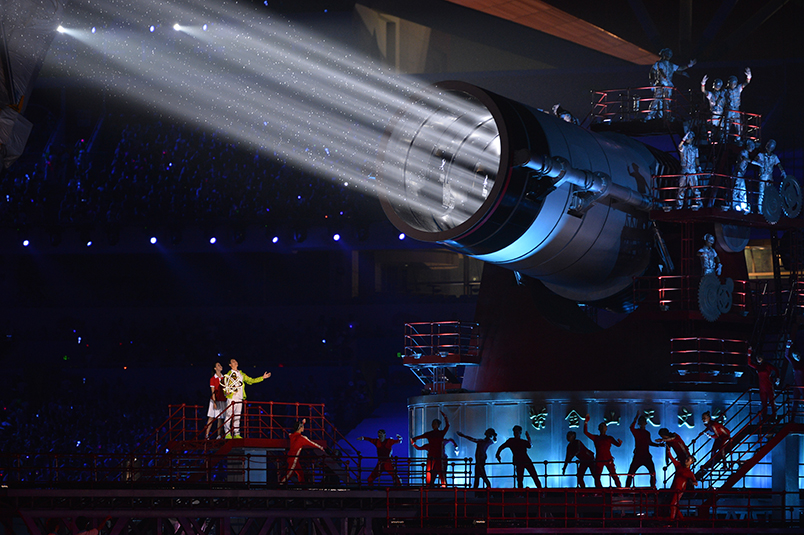 全球最亮光束電腦燈浩洋轟天炮G10B,正是今年浩洋跟飛利浦合作開發(fā)的,這款全新革命性新產(chǎn)品采用飛利浦鉑金17RA光源,于今年3月份在GET Show上全球首發(fā),并在青奧會上得到廣泛應(yīng)用。16日當(dāng)晚,轟天炮G10B化成天文望遠(yuǎn)鏡,展現(xiàn)了天文望遠(yuǎn)鏡和渾天儀之間的超時空對話。此外,特寶麗無線直流電池LED染色電腦燈為智能機械人添彩裳,體現(xiàn)全球青年人不斷追夢、圓夢、筑夢,表達(dá)青年人永遠(yuǎn)面向未來、點亮未來的精神。