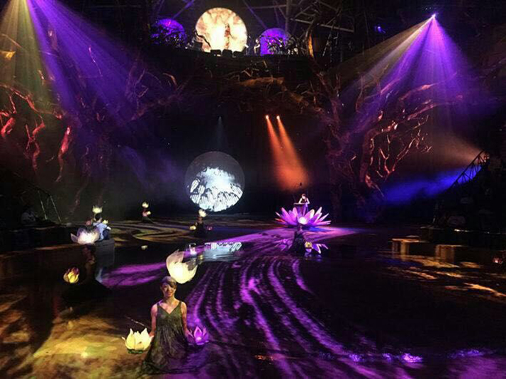 浩洋電子搖頭染色燈PT330W外形輕巧,光斑角度小,具有光斑均勻、色彩柔和細(xì)膩等特點(diǎn),曾在張惠妹2015烏托邦世界巡城演唱會(huì)和Katy Perry棱鏡中國(guó)首秀中有過(guò)精彩表現(xiàn)。在傣秀舞臺(tái)上配合浩洋電子另一款大功率搖頭染色燈V2000W,共同烘托出奇幻、絢爛的視覺(jué)效果。