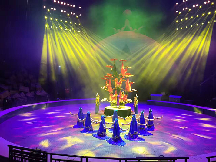 1月28日,歷時(shí)200多個(gè)日夜,投資5000余萬(wàn),云南省規(guī)模最大、級(jí)別最高的雜技馬戲演出——“云南圓通國(guó)際雜技馬戲劇場(chǎng)”在春節(jié)大年初一進(jìn)行首演。浩洋電子傾力打造云南圓通國(guó)際雜技馬戲劇場(chǎng)的專業(yè)舞臺(tái)燈光演出,旗下自主研發(fā)特寶麗品牌高質(zhì)量產(chǎn)品:光束燈G9B、切割燈V2000P、追光燈FS800M、染色燈OK370Z、染色燈OK190Z、光束燈PT189B、固定防水染色燈OVAL48D等全程為劇場(chǎng)服務(wù)。絢麗的浩洋燈光效果與各類雜技精彩節(jié)目融為一體,呈現(xiàn)一場(chǎng)頂級(jí)的視聽(tīng)藝術(shù)盛宴,完美的燈光藝術(shù)效果得到了導(dǎo)演組、云南省演藝集團(tuán)及大馬戲劇場(chǎng)領(lǐng)導(dǎo)們的高度評(píng)價(jià)和肯定!