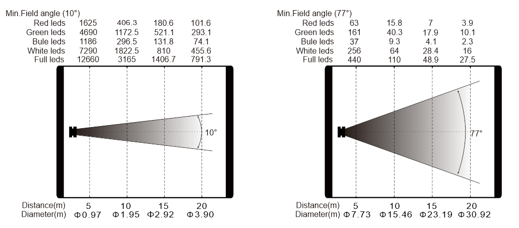 變焦范圍:5.9°- 59.9°(光束角),10°-77°(光斑角)