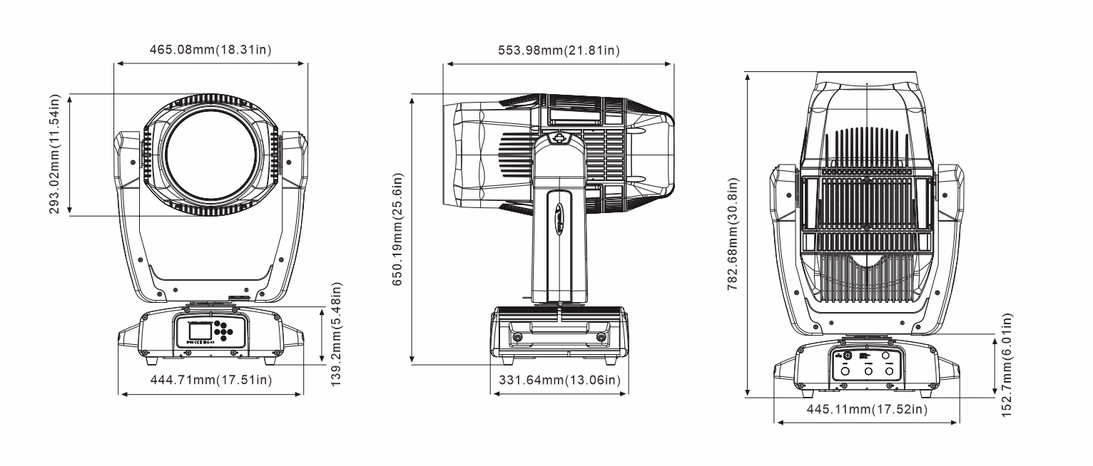 可從控臺完成更改DMX地址碼,遙控開關(guān)燈泡,機器重設(shè)
