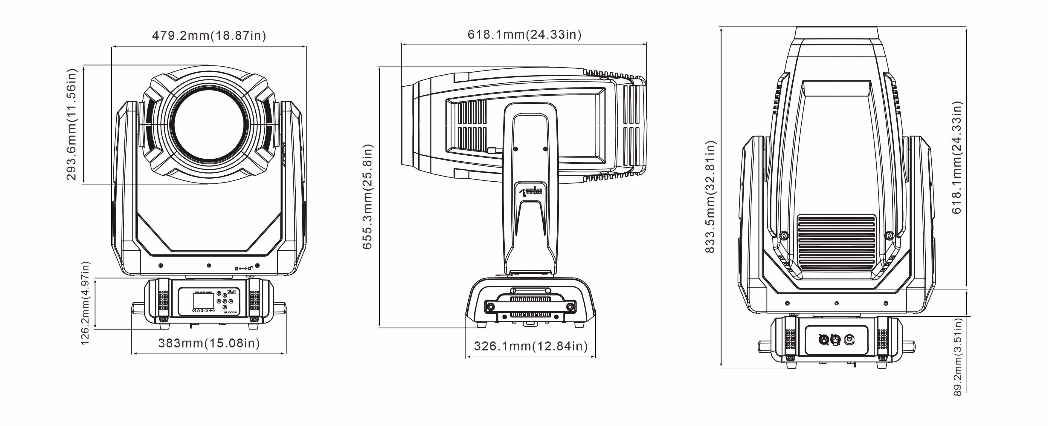 切割盤:一組由4個切角片組成可控制的光斑切角系統(tǒng),整個切角系統(tǒng)可做90°旋轉(zhuǎn)