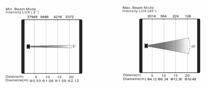 變焦范圍:5°-45°(光斑角)