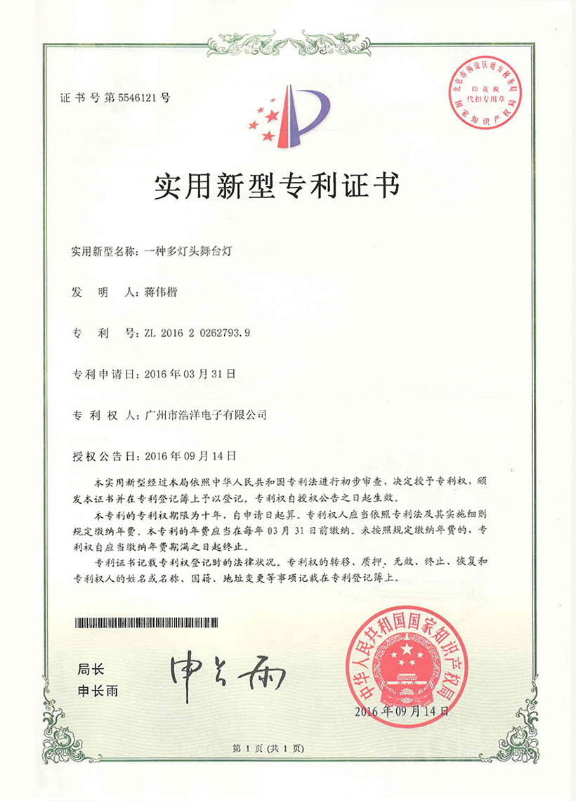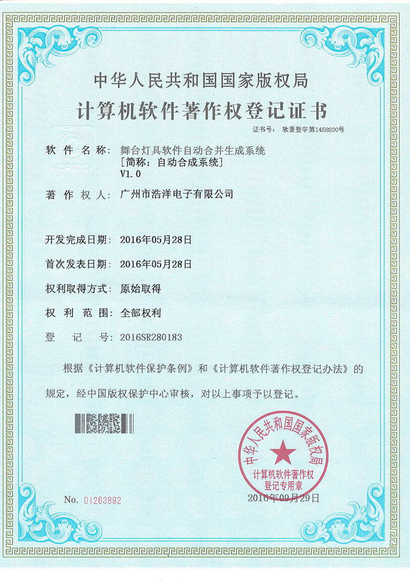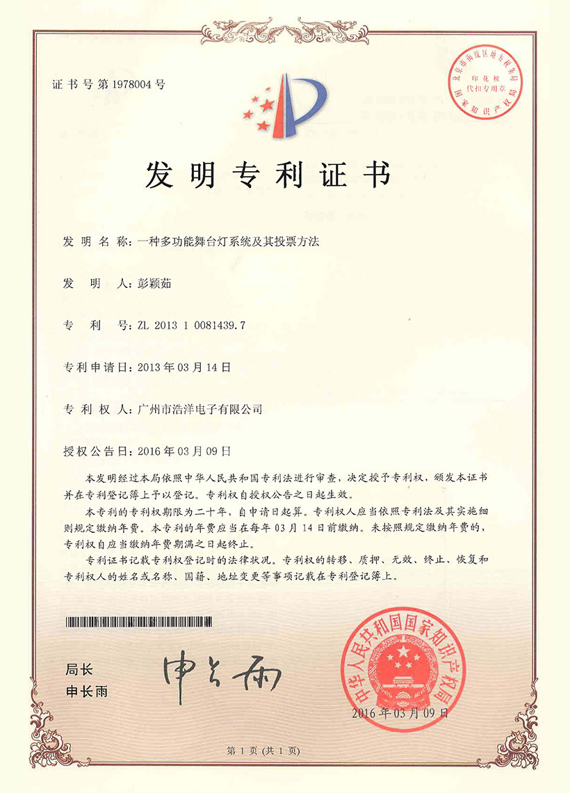 依托100多人的核心研發(fā)團(tuán)隊、5000多平方米廣東省演藝燈光工程(研發(fā))中心,以及持續(xù)的巨額研發(fā)投入,公司及子公司累計取得了“發(fā)明專利”、 “外觀設(shè)計專利”、“實(shí)用新型專利”、“計算機(jī)軟件著作權(quán)登記”等境內(nèi)外專利300余項,專利保有量行業(yè)領(lǐng)先!