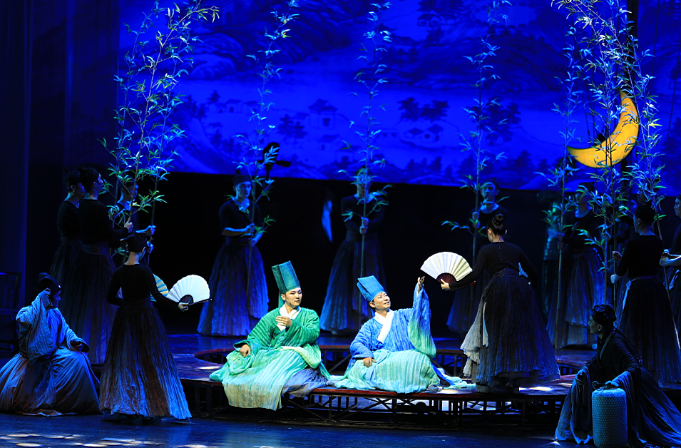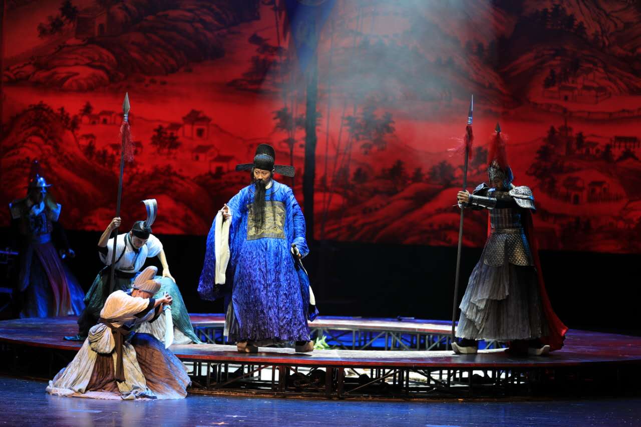 據(jù)導演宮曉東介紹,該劇在舞臺的呈現(xiàn)上別具風格,特別運用幾塊可移動的平臺打破傳統(tǒng)的寫實手法,演員們在上面可表現(xiàn)出攀山越嶺、行舟涉水的情景。全劇除了背景音樂,所有的音效如狂風、水流、濃霧、雷鳴、鳥鳴等也都是由演員現(xiàn)場制作。劇中還融合了中國戲曲、古典民樂、現(xiàn)代舞蹈、民族文化等多種表現(xiàn)元素。另外,觀眾們還能看到演員現(xiàn)場換服裝、候場……這樣的創(chuàng)新,打造出一部極強現(xiàn)代感的歷史劇。在首演結束后,在場的專家、領導和觀眾們都對該劇予以一致好評。