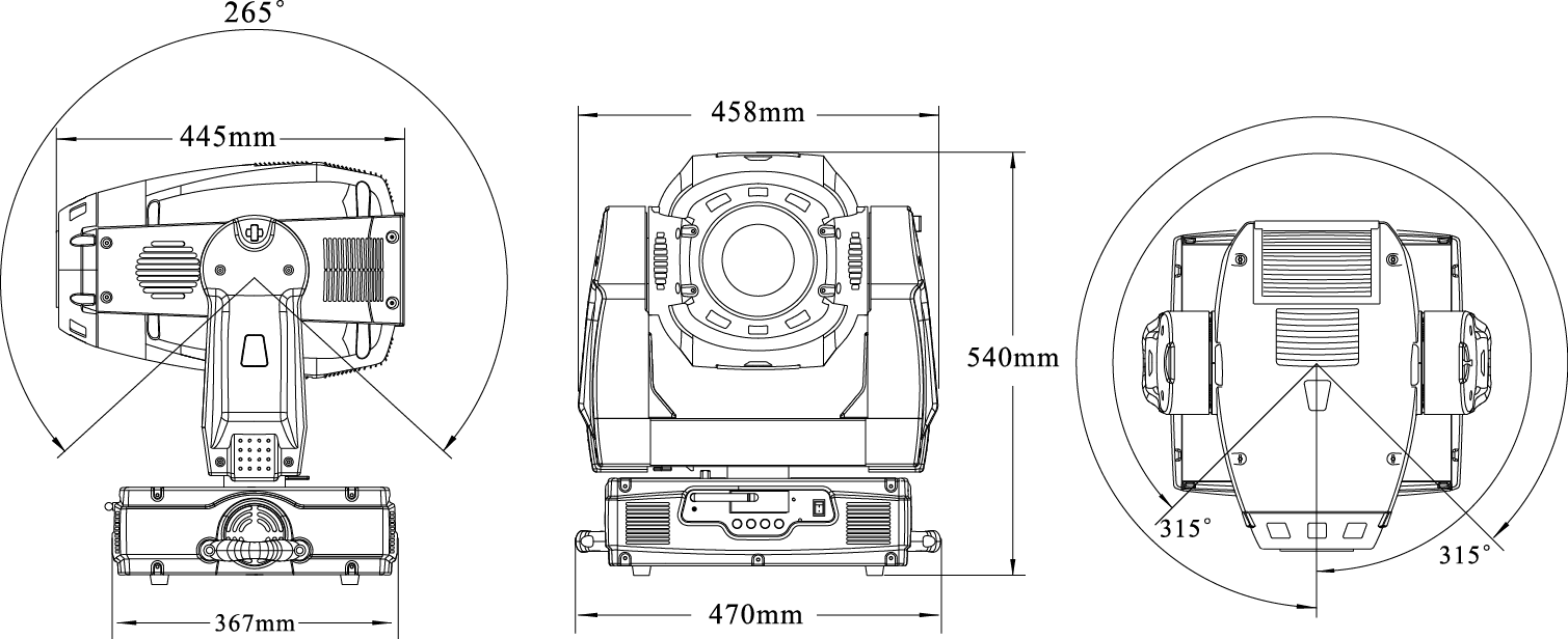 可從控臺完成更改DMX地址碼,遙控開關燈泡,機器重設,聲控模式的轉換等功能
