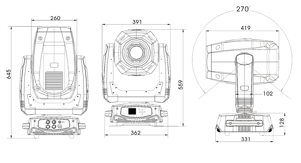 可從控臺完成更改DMX地址碼,遙控開關燈泡,機器重設,聲控模式的轉換等功能