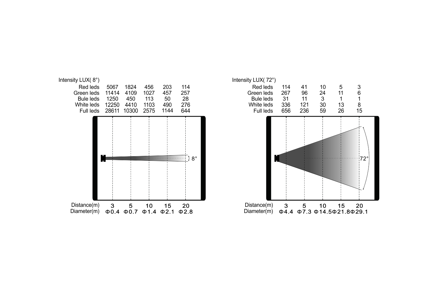 調(diào)光:0-100%線性調(diào)光,可同時控制4個主顏色的明暗變化和閉光